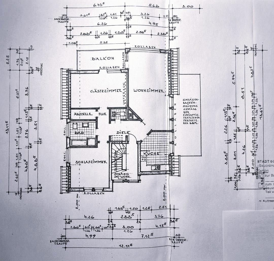 Zur Maßstäblichkeit einige Größenangaben zu den wesentlichen Räumen der Wohnung: