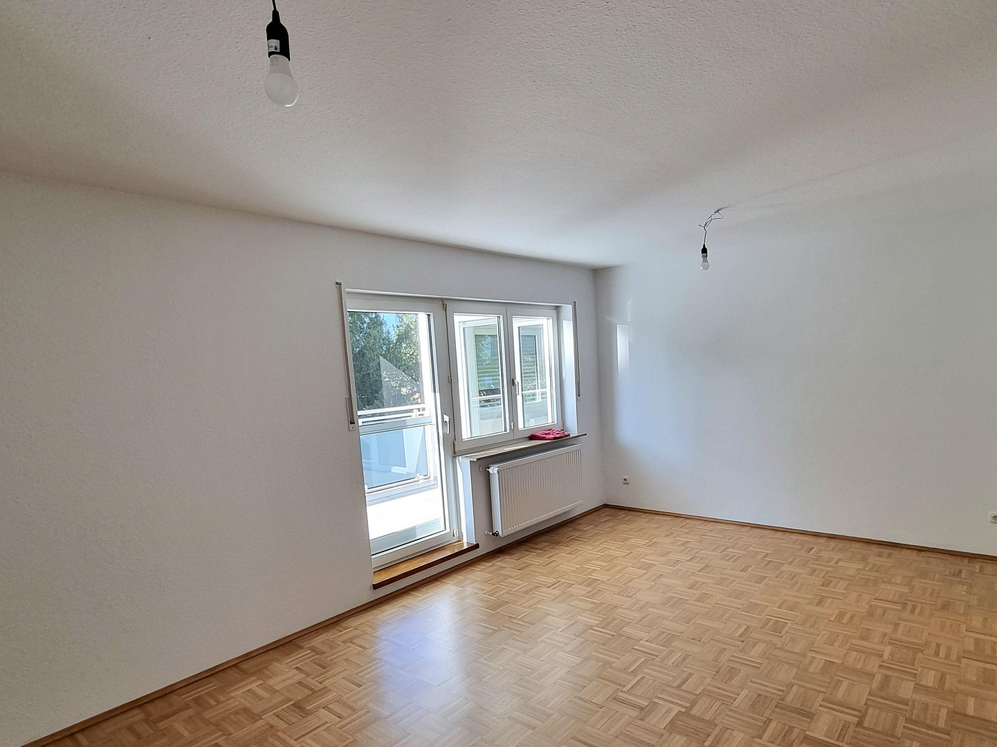 - Parkettboden abgeschliffen, versiegelt, Fußleisten erneuert