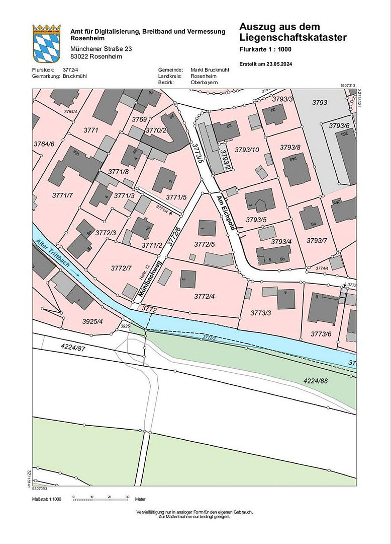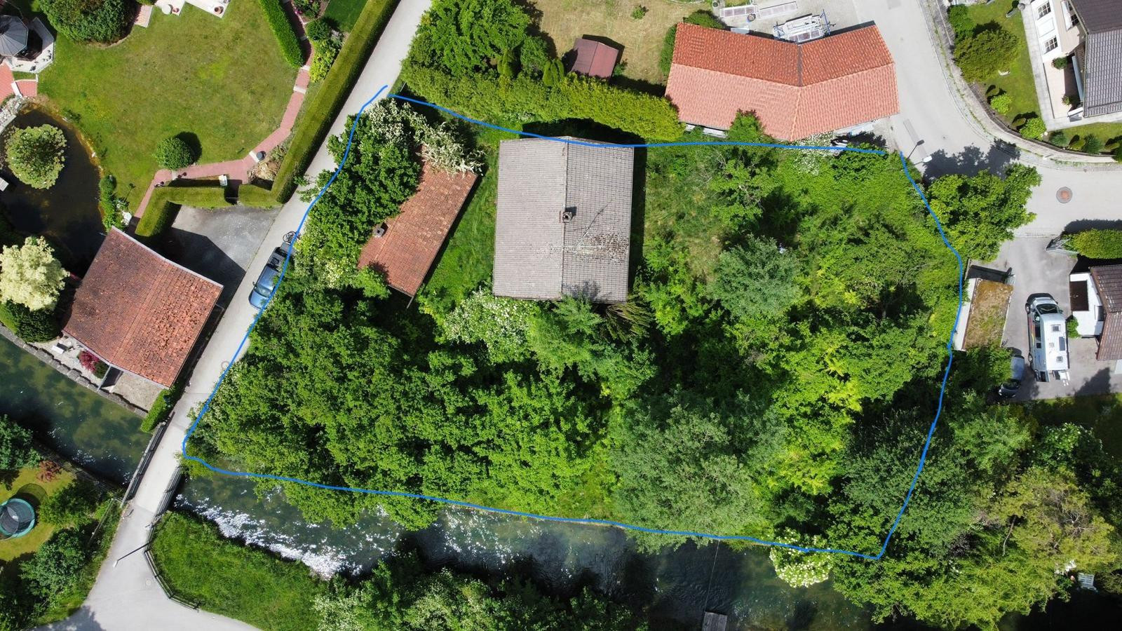 Mühlbachweg 3, 83052 Bruckmühl – BayernAngeboten wird hier ein sehr schönes und großes Baugrundstück mit Altbestand in toller, ruhiger Lage direkt am kleinen Flüsschen, dem Triftbach.