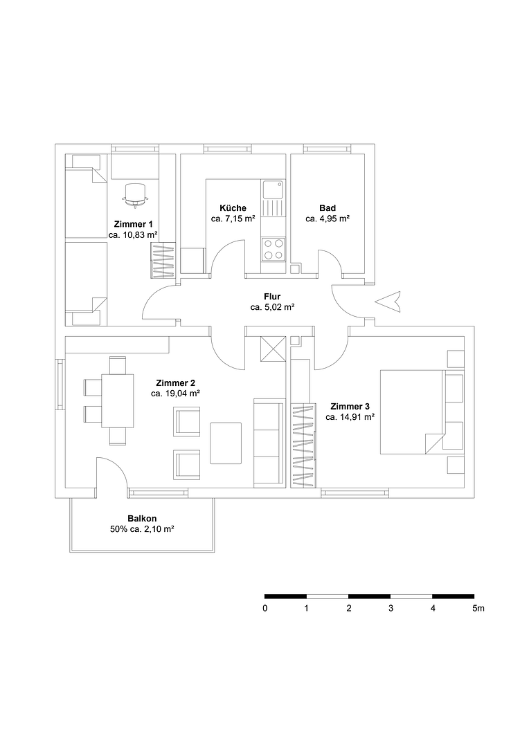 Zur Wohnung gehören außerdem eine voll ausgestattete Küche 🍳, ein modernes, helles Tageslichtbad 🚿 mit Dusche und WC sowie ein Flur, der alle Räume miteinander verbindet. Die Gemeinschaftsbereiche (ca. 17 m²) bieten genug Platz zum Kochen, Quatschen oder einfach mal Chillen 😎.