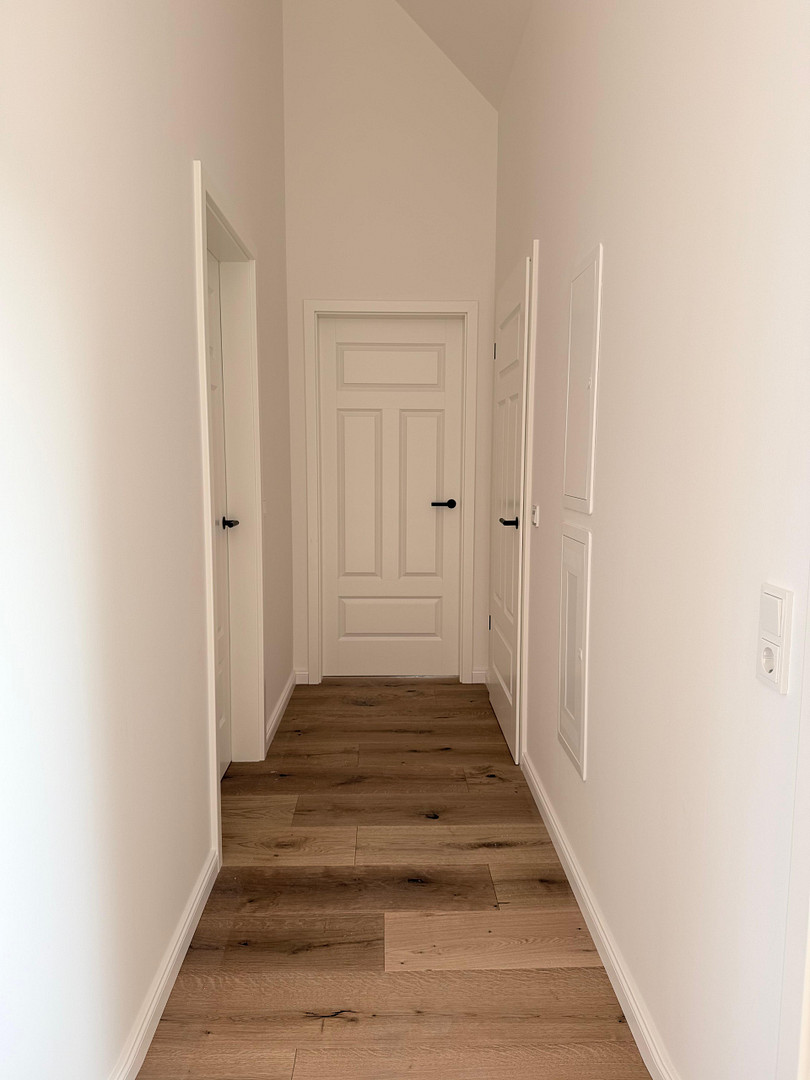 - Massives Eichen-Echtholzparkett in Wohn- und Schlafräumen