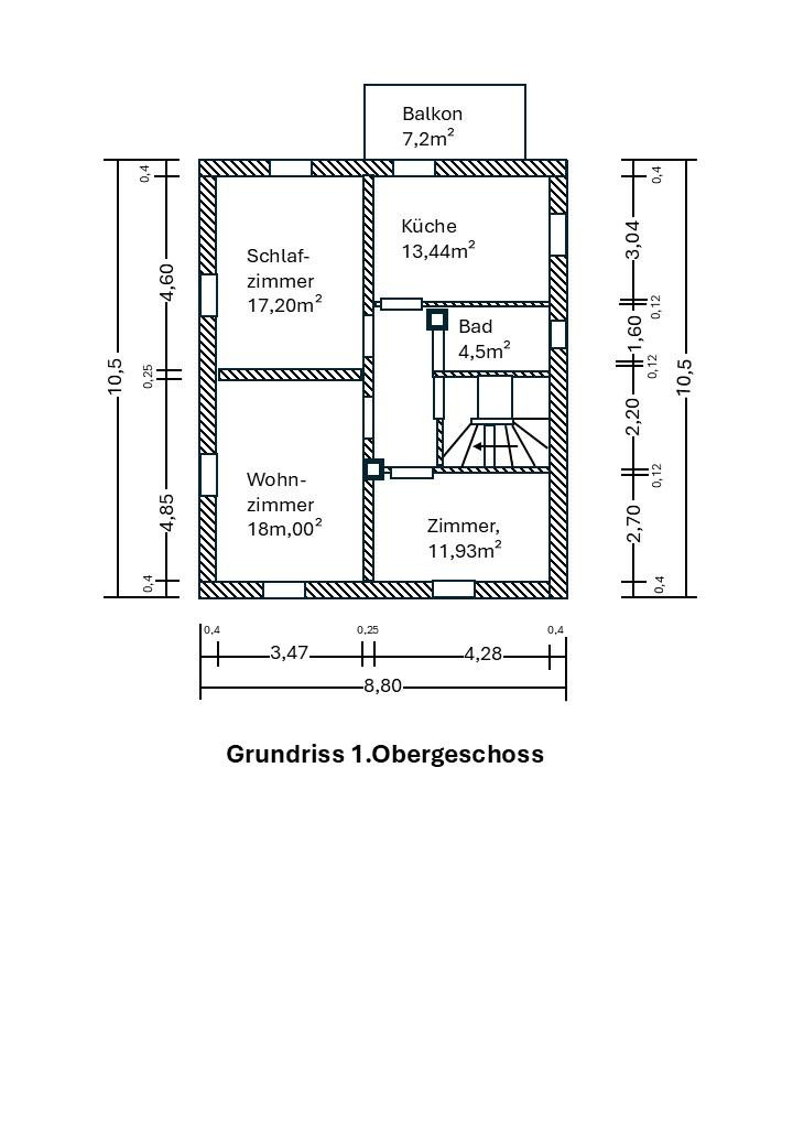 - Obergeschosswohnung: ca. 72 qm Wohnfläche mit ausgebautem Dachgeschoss: zusätzliche 30 qm