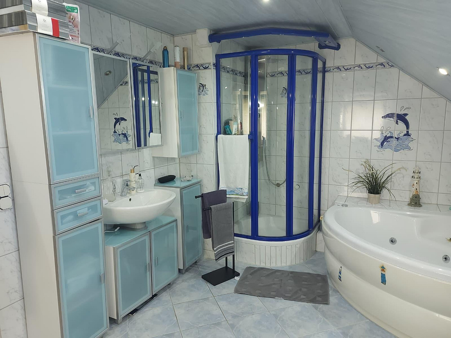 -Tageslichtbad mit Dusche + Eckbadewanne