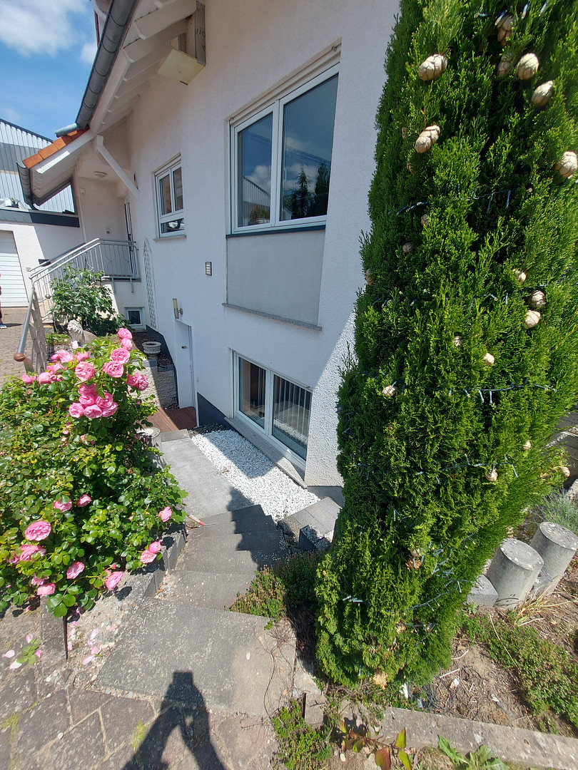Im Erdgeschoss befindet sich eine offene Wohnküche mit Esszimmer und Wohnzimmer mit Zugang zu einer überdachten Terrase. Im Keller befindet sich der Heizraum und zwei Kellerräume, sowie ein großer Raum der als Büro oder Hobbyraum genutzt werden kann, sowie ein seperates Bad mit Toilette und Dusche .