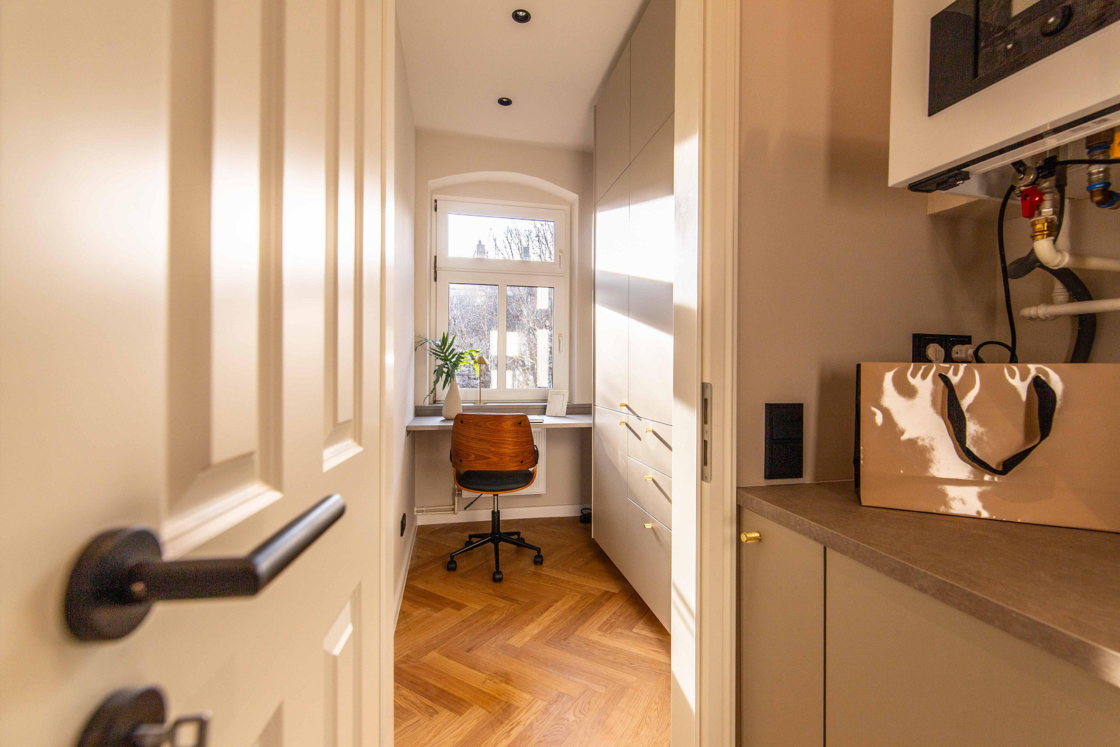 • Maßgefertigte Einbauten: Garderobe, Homeoffice/Schreibtischlösung, Einbauschränke, TV-/Sideboardanlage