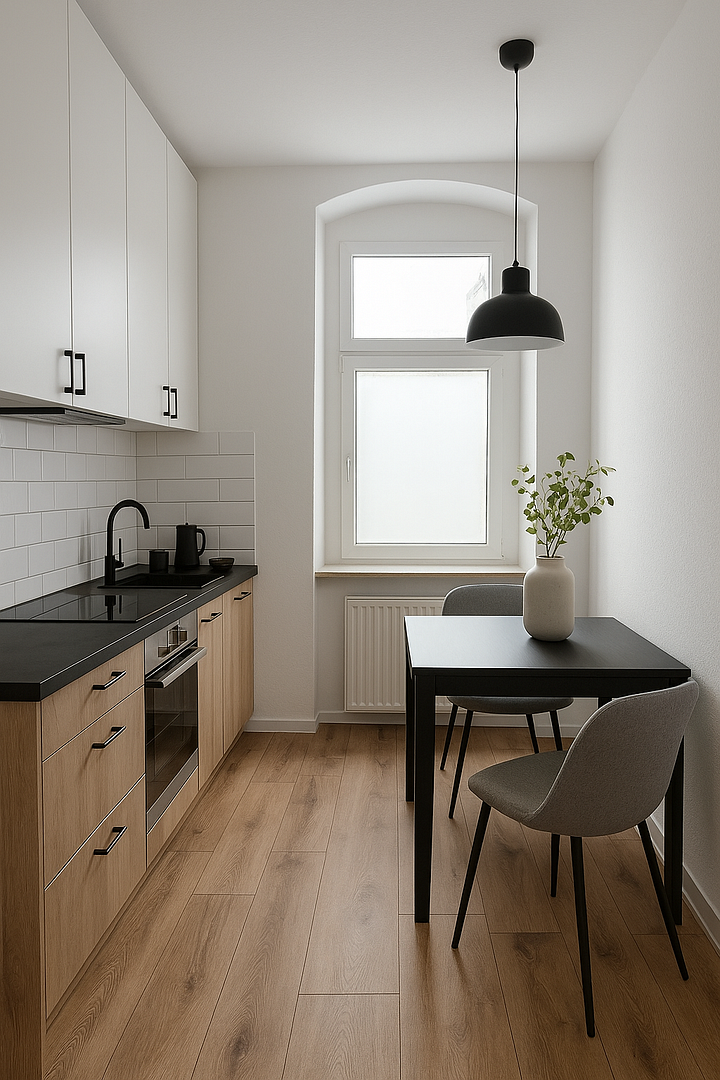 Achtung: Wohnung ohne Mobiliar - Fotos mit Mobiliar sind KI-generiert und dienen als Einrichtungsbeispiel / Einbauküche ist aber nach Absprache möglich