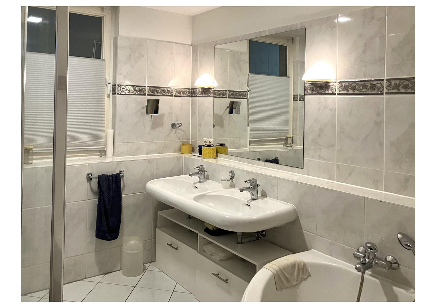 Auf großzügigen ca. 150 m² Wohnfläche, verteilt auf Erdgeschoss und Souterrain, bietet die Wohnung reichlich Platz für Familien, Paare oder anspruchsvolle Individualisten. Herzstück der Wohnung ist der helle und offen gestaltete Wohn- und Essbereich mit moderner Einbauküche. Von dem Wohnbereich gelangt man zu der großen Terrasse und in den Garten. Eine Wendeltreppe führt ins Souterrain, das durch seine clevere Raumaufteilung überzeugt: Hier befinden sich ein Schlafzimmer, ein Arbeitszimmer sowie ein praktischer Abstellraum. Das Hauptbad ist mit einer Eckbadewanne, Fenster und hochwertigen Armaturen ausgestattet. Zusätzlich steht ein modernes Gäste-Duschbad zur Verfügung. Ausstattungsmerkmale wie edle Parkettböden, Fußbodenheizung und hochwertige Materialien unterstreichen den exklusiven Anspruch dieser Immobilie. Zur Wohnung gehören ein Tiefgaragenstellplatz, ein Kellerabteil sowie eine gemeinschaftliche Waschküche, die bequem vom Souterrain aus erreichbar ist.