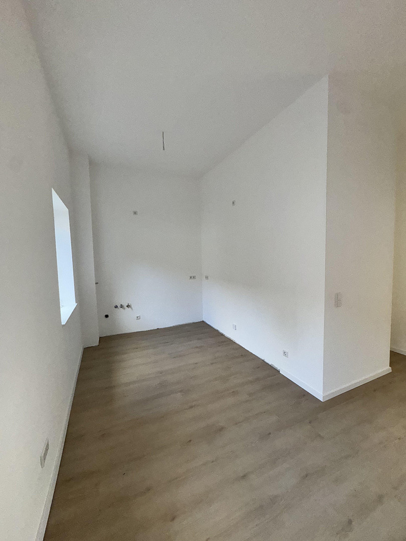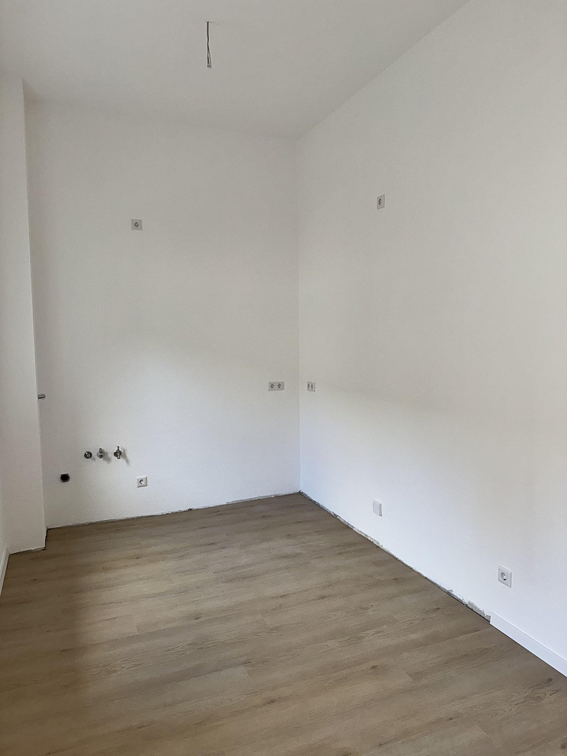 Die Wohnung verfügt über eine neue Einbauküche (EBK) [Lieferung Mitte Dezember] mit offenem Wohnzimmer, zwei Schlafzimmer sowie ein modernes Badezimmer mit Dusche und einen Hauswirtschaftsraum mit Waschmaschinenanschluss.