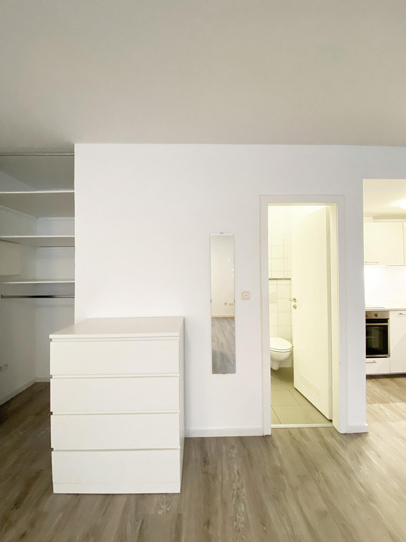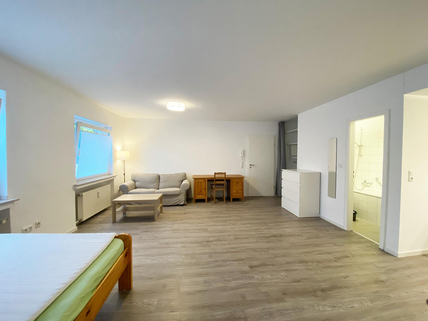 Das großzügige Einzimmerapartment wurde in 2019 saniert. Die Wohnung ist sofort bezugsfertig und verfügt sogar über eine neuwertige Einbauküche inklusive Herd (Umluft), Cerankochfeld, Dunstabzugshaube mit Kaminschachtanschluss zum Dach, Spülmaschine, Edelstahlwaschbecken, ausreichend Stauraum und ansprechender Beleuchtung. Die Wohnung wurde mit einer komplett neuen Elektroinstallation ausgestattet mit eigenem Sicherungskasten in der Wohnung. Das Bad wurde ebenfalls saniert und ist ausgestattet mit Badewanne, Hänge-WC und Handtuchheizkörper. Der Bodenbelag besteht aus einem hochwertigen Designvinyl in Holzoptik mit hervorragenden Schall.- und Wärmedämmenden Eigenschaften. Alle Wände wurden komplett neu tapeziert und die Decke wurde frisch gespachtelt. Die Wohnungseingangstüre wurde ebenfalls erneuert. Die Möbel im Wohnzimmer (Bett,Couch,Tisch) gehören nicht zum Inventar.