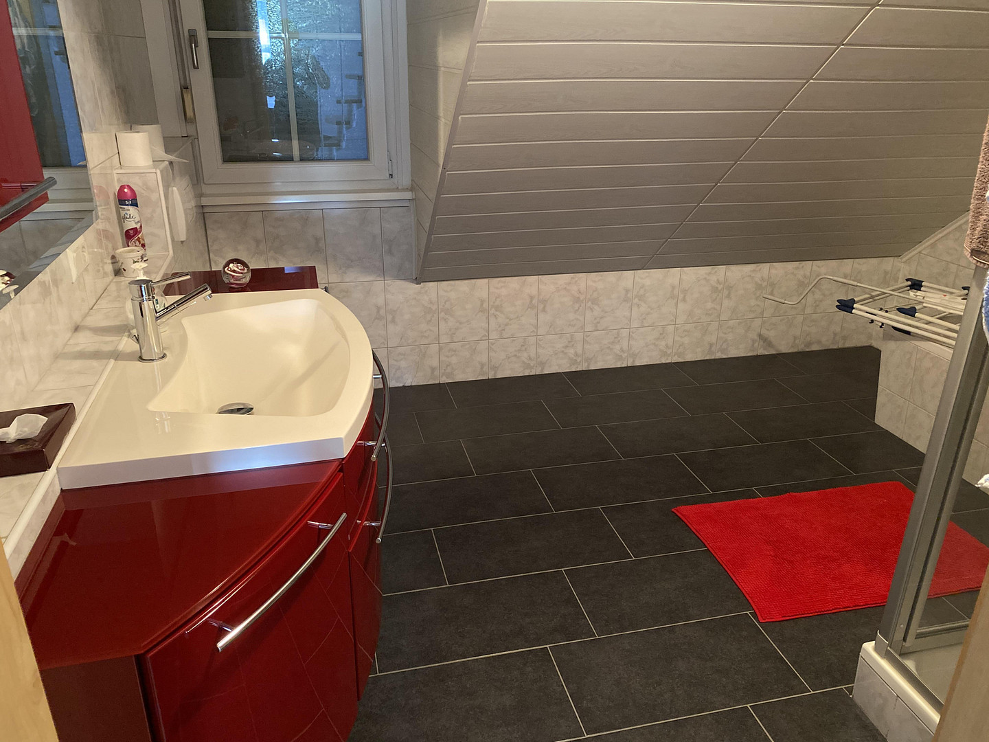 Aktuell dient das OG komplett als Anliegerwohnung mit einer komplett ausgebauten Dachspitze als Maisonettewohnung mit Wendeltreppe. Diese ist bereits auch vermietet. Die Einnahmen belaufen sich auf ca. 12.000€ pro Jahr. Die Anliegerwohnung hat von außen einen separaten Eingang.