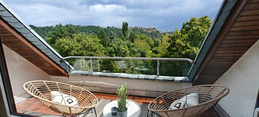 - Sonnenbalkon mit Blick auf die Festung Ehrenbreitstein