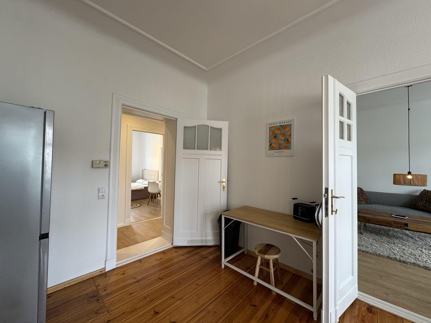 Die Wohnung liegt in einer lebendigen und zentralen Kiezgegend an einer Hauptstraße, die den Bewohnern eine perfekte Balance aus urbanem Flair und guter Infrastruktur bietet.