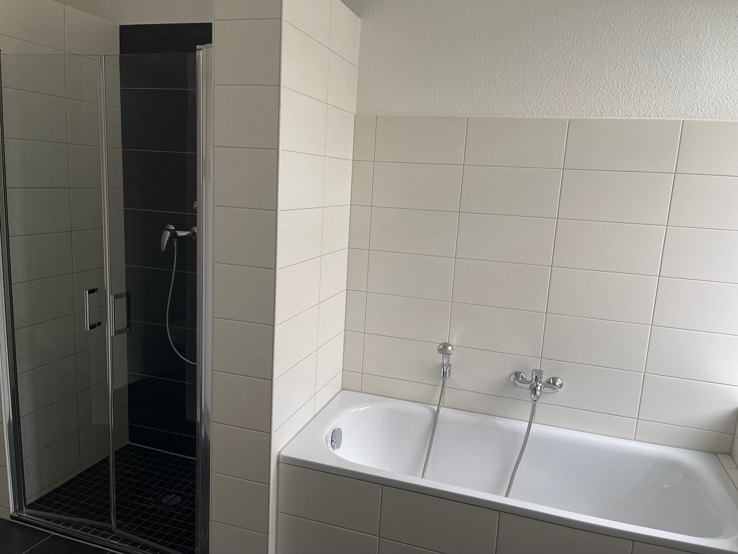 Das Gebäude Bahnhofstraße 2 ist vollständig saniert und modernisiert. Die Wohnungen wurden modern nach Mieterwunsch ausgestattet. Im Flurbereich befindet sich ein kleiner, separater Abstellraum und eine Gästetoilette mit Waschbecken. Sämtliche Fußböden, die Elektrik, Innentüren, die Wohnungseingangstür sowie das Bad sind vollständig neu, die übrigen Innenwände verputzt oder neu tapeziert und gestrichen.