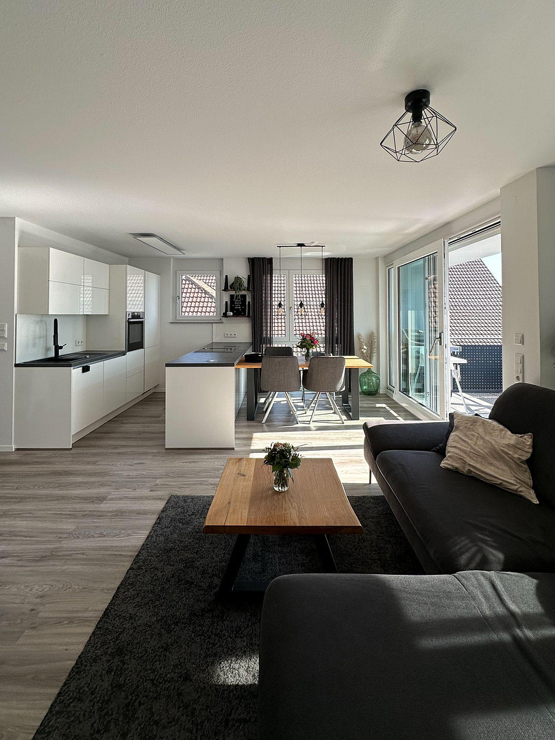 Unsere neuwertige, geschmackvolle und gut ausgestattete 3 Zimmer Wohnung befindet sich in einem sehr gepflegten und ruhigem 8 Parteien Mehrfamilienhaus in zentraler Lage von dem beliebten Örtchen Deckenpfronn.