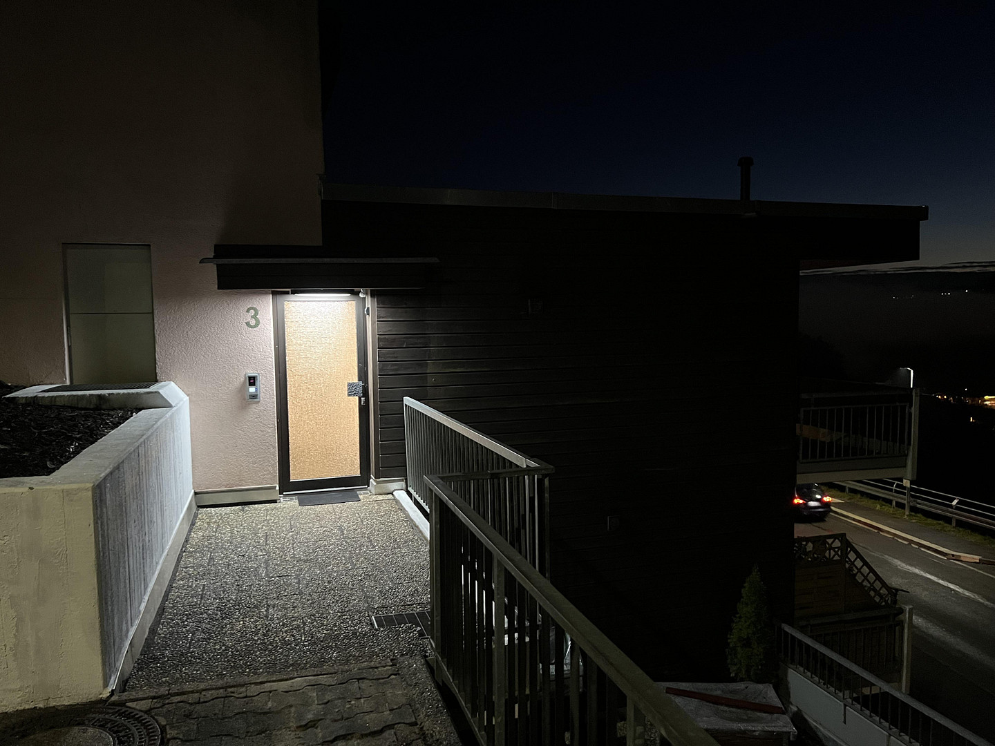 Die Wohnung befindet sich in einem terrassenartig angelegten Gebäudeensemble und verfügt über einen eigenen Hauseingang, wodurch maximale Privatsphäre und kein Treppenhausreinigungsaufwand entsteht.