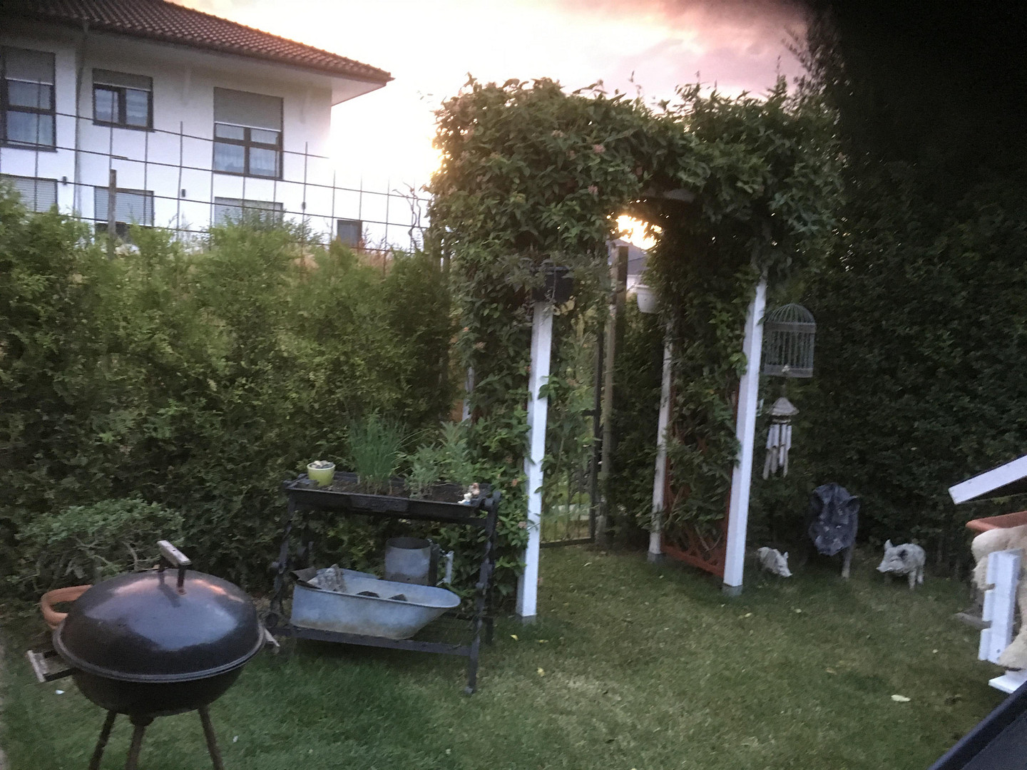 Der Garten ist mit Hecken angelegt und nicht einsehbar von außen.