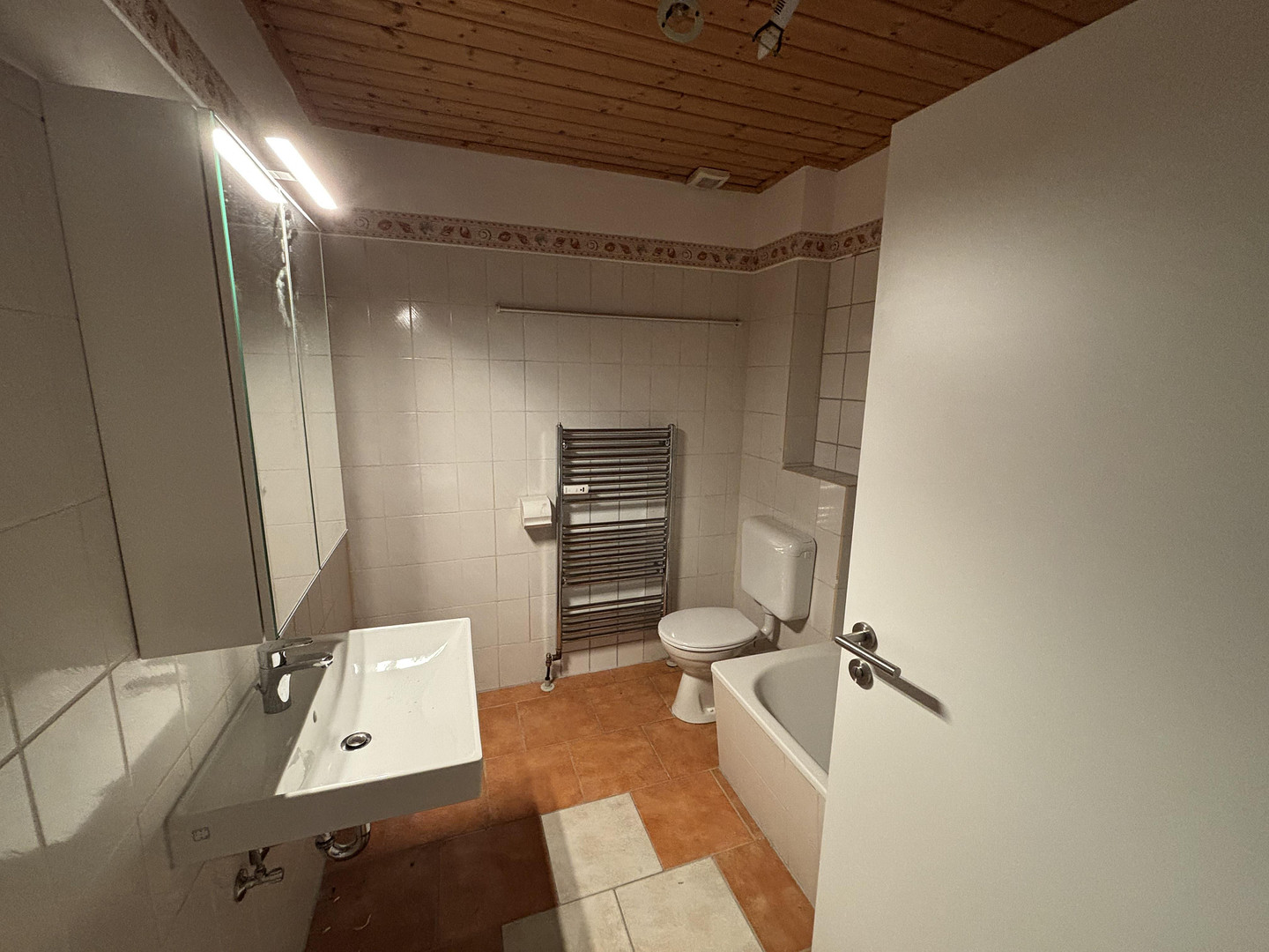 Im Badezimmer wurden ein neues Waschbecken samt Spiegelschrank installiert sowie sämtliche Armaturen erneuert. Ein separates Gäste-WC sorgt für zusätzlichen Komfort.