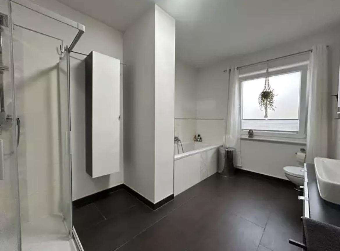 Das Obergeschoss ist in 4 Schlafräume aufgeteilt, die sich flexibel nutzen lassen. Das helle Badezimmer ist mit einer Badewanne sowie einer Dusche ausgestattet.