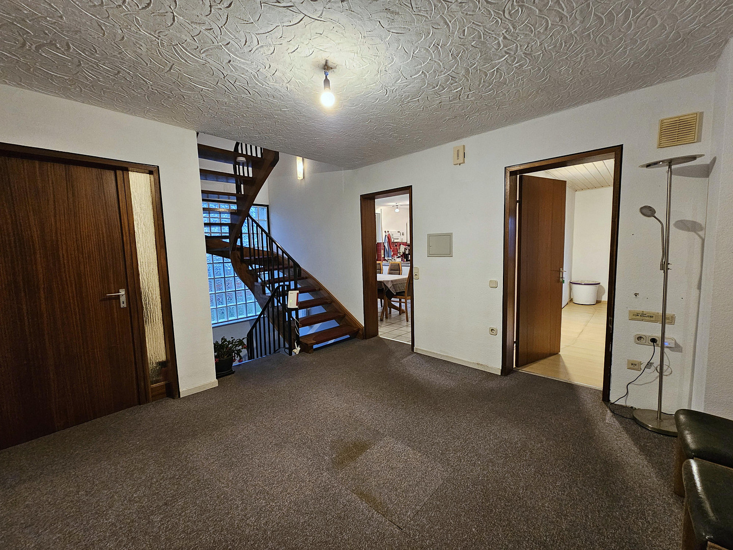 Die vorhandene Grundrissstruktur eröffnet die Option, das Haus in zwei separate Wohneinheiten aufzuteilen, z. B. durch eine Außentreppe zum Dachgeschoss.