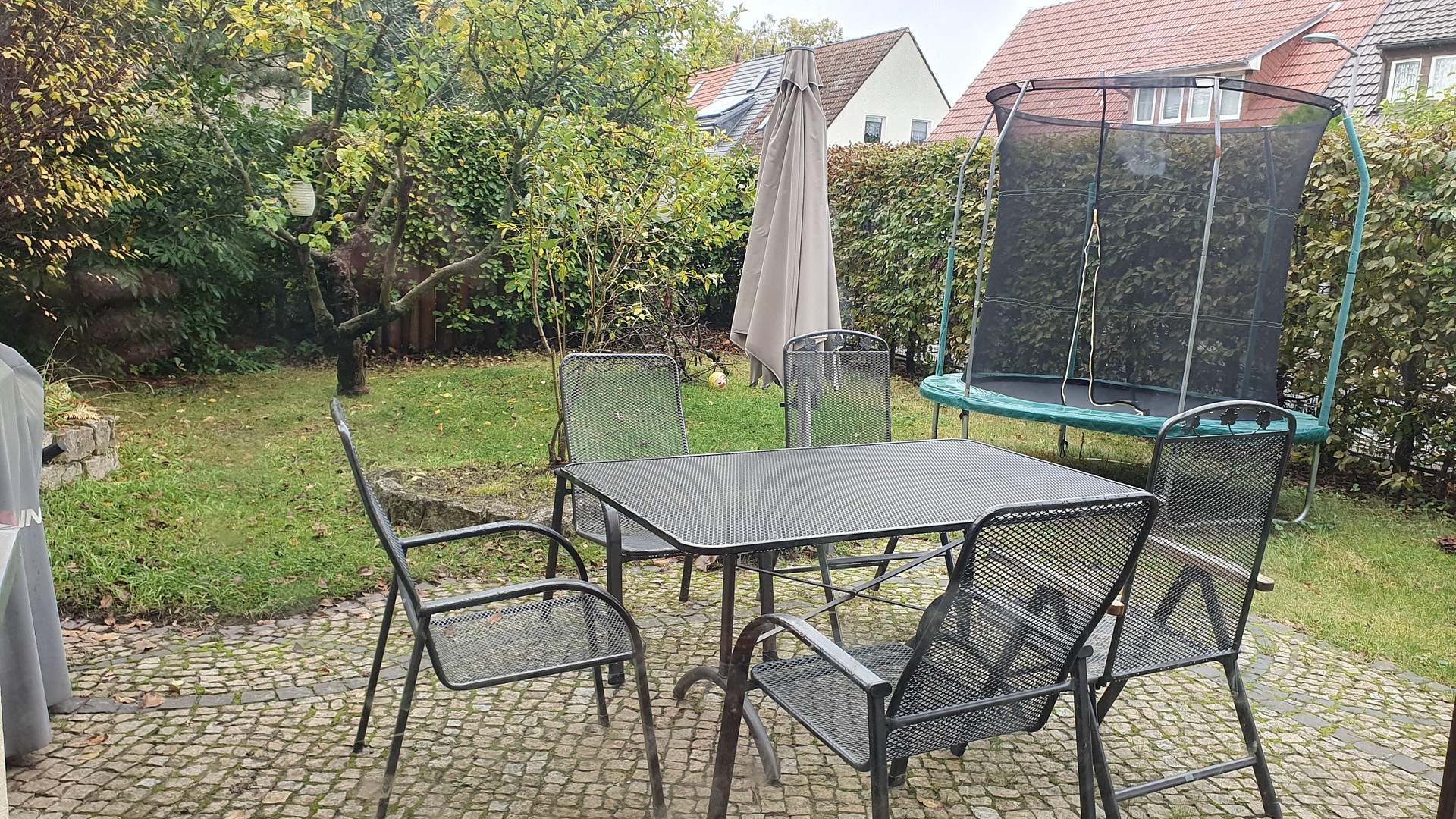 Der durch eine Buchenhecke begrenzte außergewöhnlich ruhige Garten bietet mit seinen 211m² genug Platz für die ganze Familie. Die mit altem Kopfsteinpflaster versehene Terrasse ist uneinsehbar und groß genug für einen Grillabend unter Freunden. Neben diversen Staudenrabatten gibt es überdies einen alten Apfelbaum. Zum Nachbargrundstück gibt es keinen Zaun, was die Großzügigkeit des Grundstücks unterstreicht. Weiterhin gibt es einen Geräte- und Fahrradschuppen.