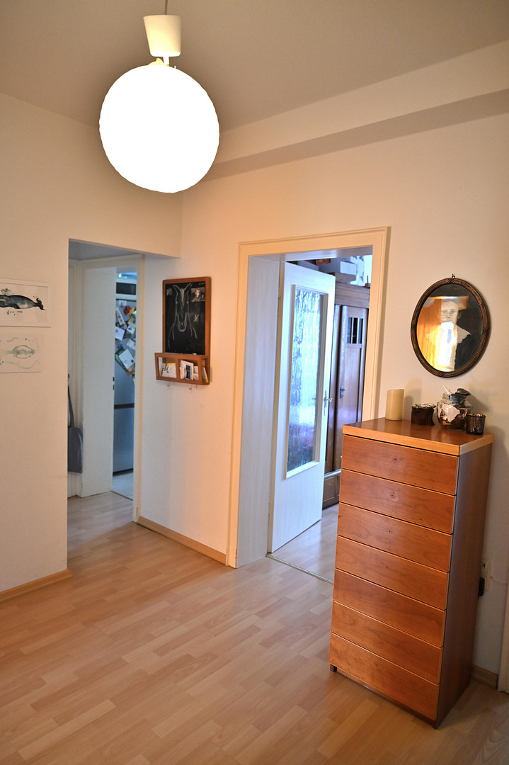 Das kleine 3. Schlafzimmer ist durch einen - derzeit geschlossenen - Durchgang mit dem Wohnzimmer verbunden. Dieser Durchgang kann in Absprache mit dem neuen Mieter gerne geöffnet werden. Die angegebene Vorauszahlung für Nebenkosten und Heizkosten, bezieht sich auf einen Vierpersonenhaushalt. Die Mindestmietdauer beträgt 24 Monate.