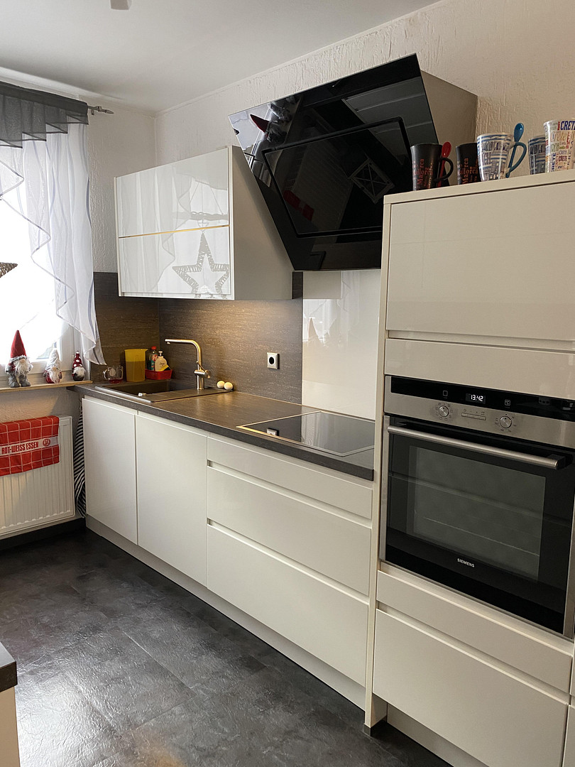 - Einbauküche mit Hänge- und Unterschränken sowie mit sämtlichen E-Geräten