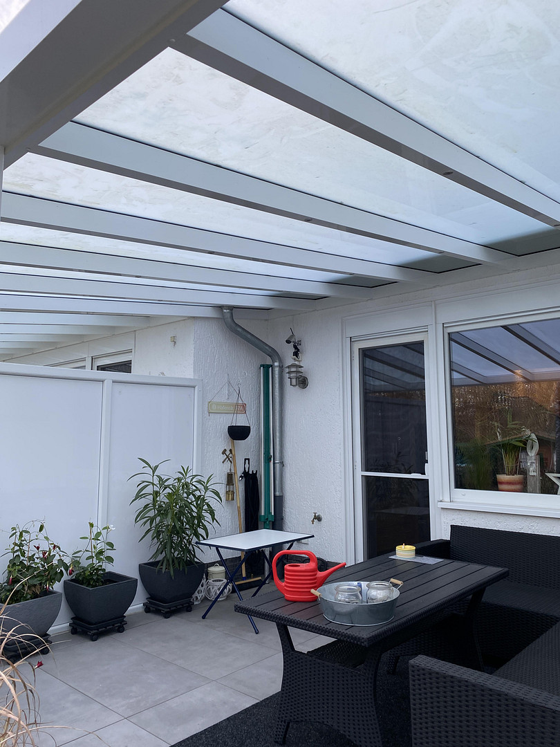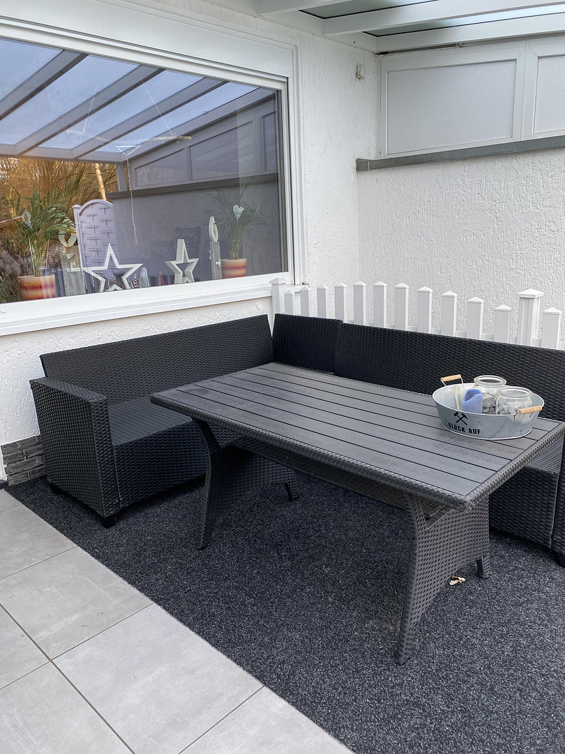 Von dem Wohn-Essraum gelangen Sie auf die neu gestaltete und überdachte Außenterrasse mit Blick in den gepflegten Garten. Die Terrassenüberdachung verfügt über eine indirekte Beleuchtung. Hier haben ihre gemütlichen Loungemöbel genügend Platz, damit Sie ihren Feierabend entspannt genießen können. Zum Sonnen bietet die hinten im Garten befindliche Süd-Terrasse genügend Platz. Der Garten selbst ist überschaubar und sehr pflegeleicht gestaltet.