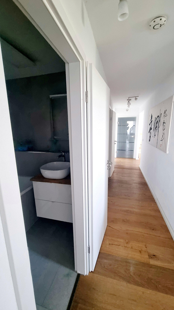 Neue Türen konplettieren den modernen Look inklusive einer schönen Glastüre, über die man aus der Diele in die Wohnung kommt.