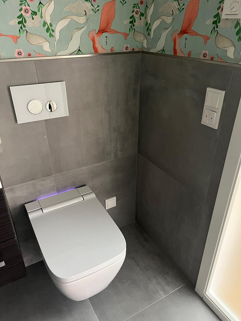 Gäste-WC mit integrierter WC-Dusche sowie einer bodenebenen Dusche
