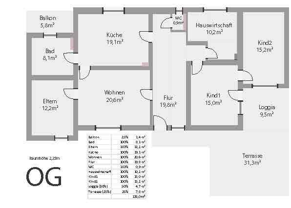 Die obere Wohnung ist mit einer 31 m² großen Dachterrasse und einer 9m²großen, schattigen Loggia ausgestattet.