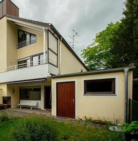 Das Haus liegt ruhig aber nicht abgeschieden: Die Immobilie befindet sich am östlichen Stadtrand, in München-Waldtrudering, am Ende einer Seitenstraße der Wasserburger Landstraße. Sie ist umgeben von Bäumen und Nachbarsgärten, gegenüber steht ein landschaftsgeschütztes Wäldchen.