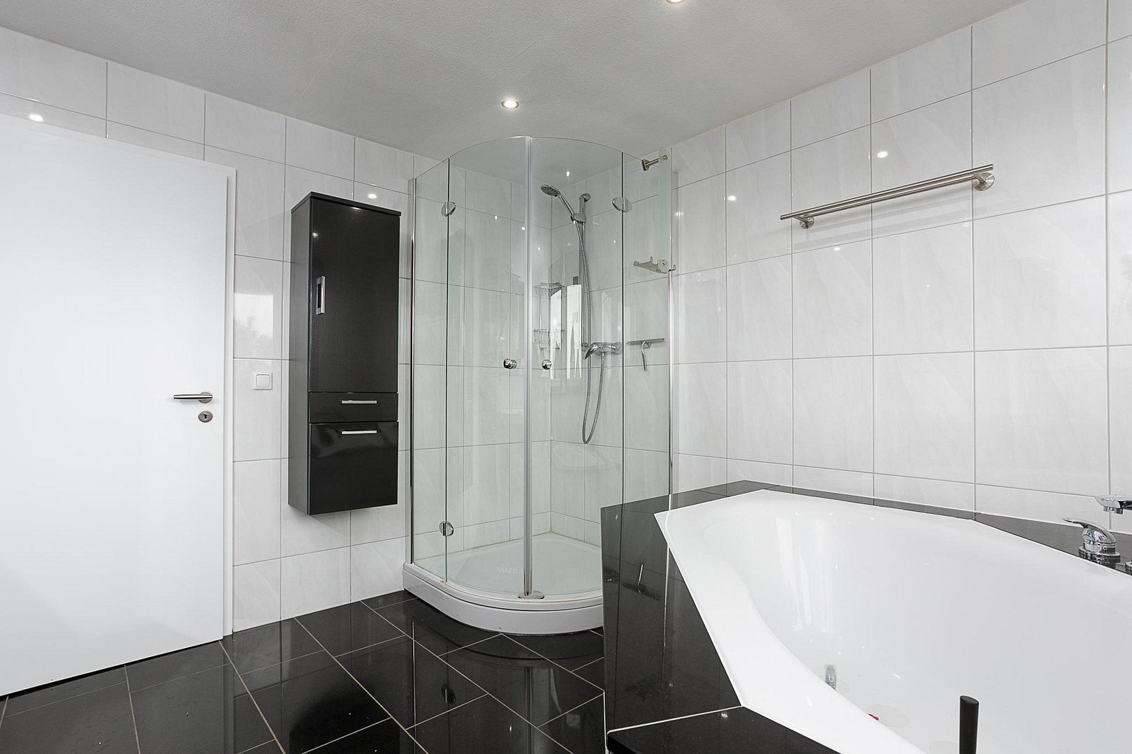 Zwei moderne Badezimmer: Hauptbad mit Tageslicht, Wanne & Dusche + praktisches Bad en Suite