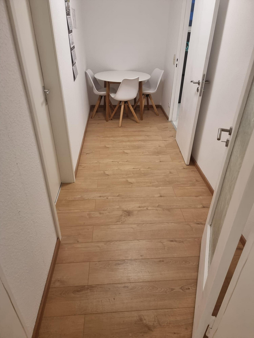 Die Gemeinschaftsräume sind ein großer Flur, eine Essecke mit einem gemütlichen Esstisch, ein modernes Bad sowie ein separates WC.