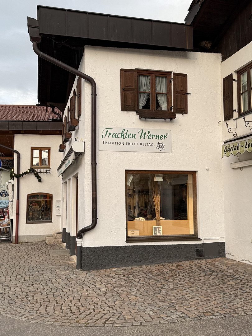 Das Ladenlokal befindet sich in der Fußgängerzone (von 6 bis 10 Uhr befahrbar) von Mittenwald.