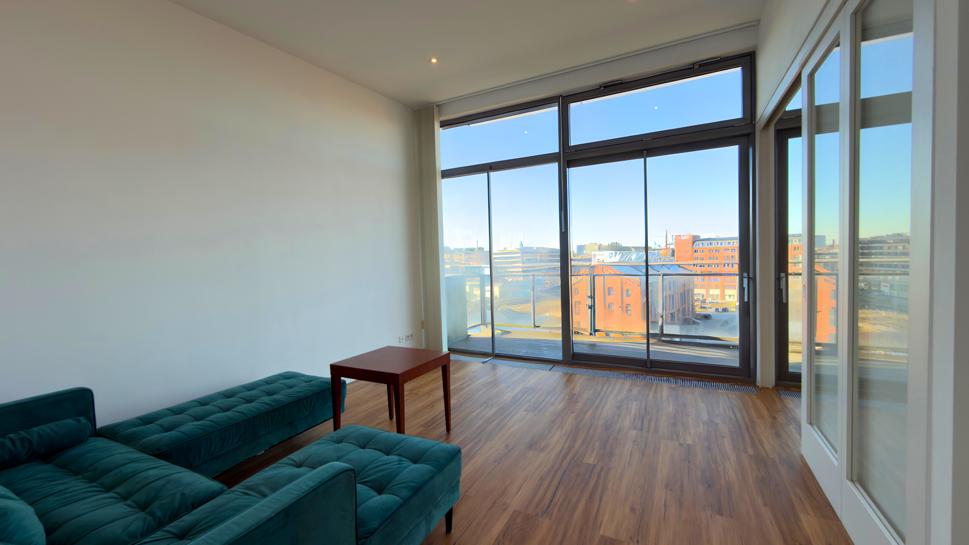 Die Wohnung verfügt über großzügige Fensterfronten, die für eine helle und offene Wohnatmosphäre sorgen. Eine Fußbodenheizung bietet angenehmen Wohnkomfort in allen Wohnbereichen. Die private Terrasse mit freiem Spreeblick hat eine Größe von ca. 12 m².