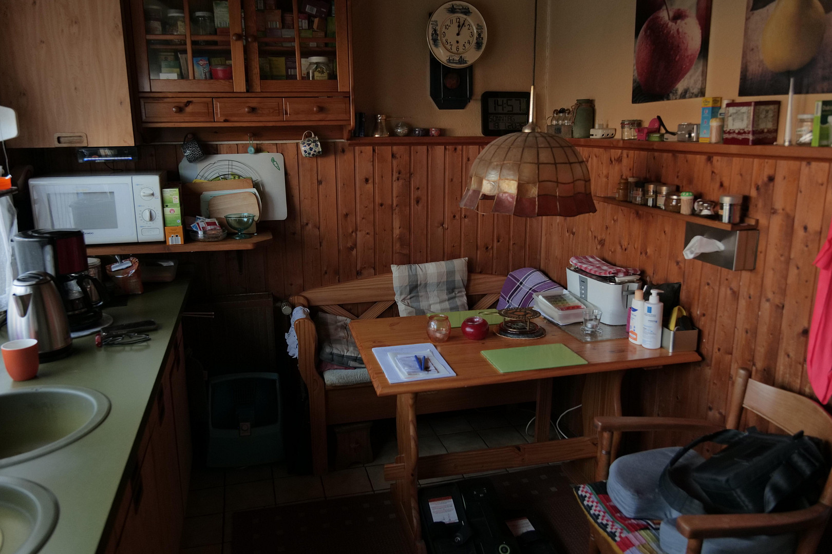 Gäste-WC, Küche, Esszimmer, Wohnzimmer mit Holzkamin, Terrasse