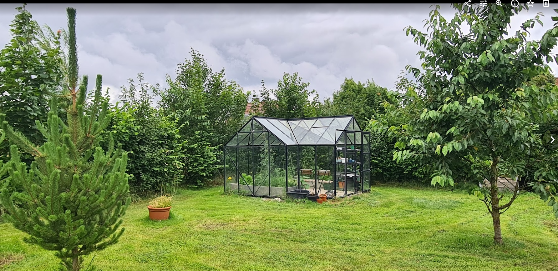 •Ca. 2.500 m² eingezäunt, pflegeleicht angelegt als Garten mit vielen Obstbäumen und Ziersträuchern (Äpfel, Kirsche, Birne, Pflaume, Pfirsich, Beeren, Walnuss, vielen Himbeeren, Brombeeren, …)