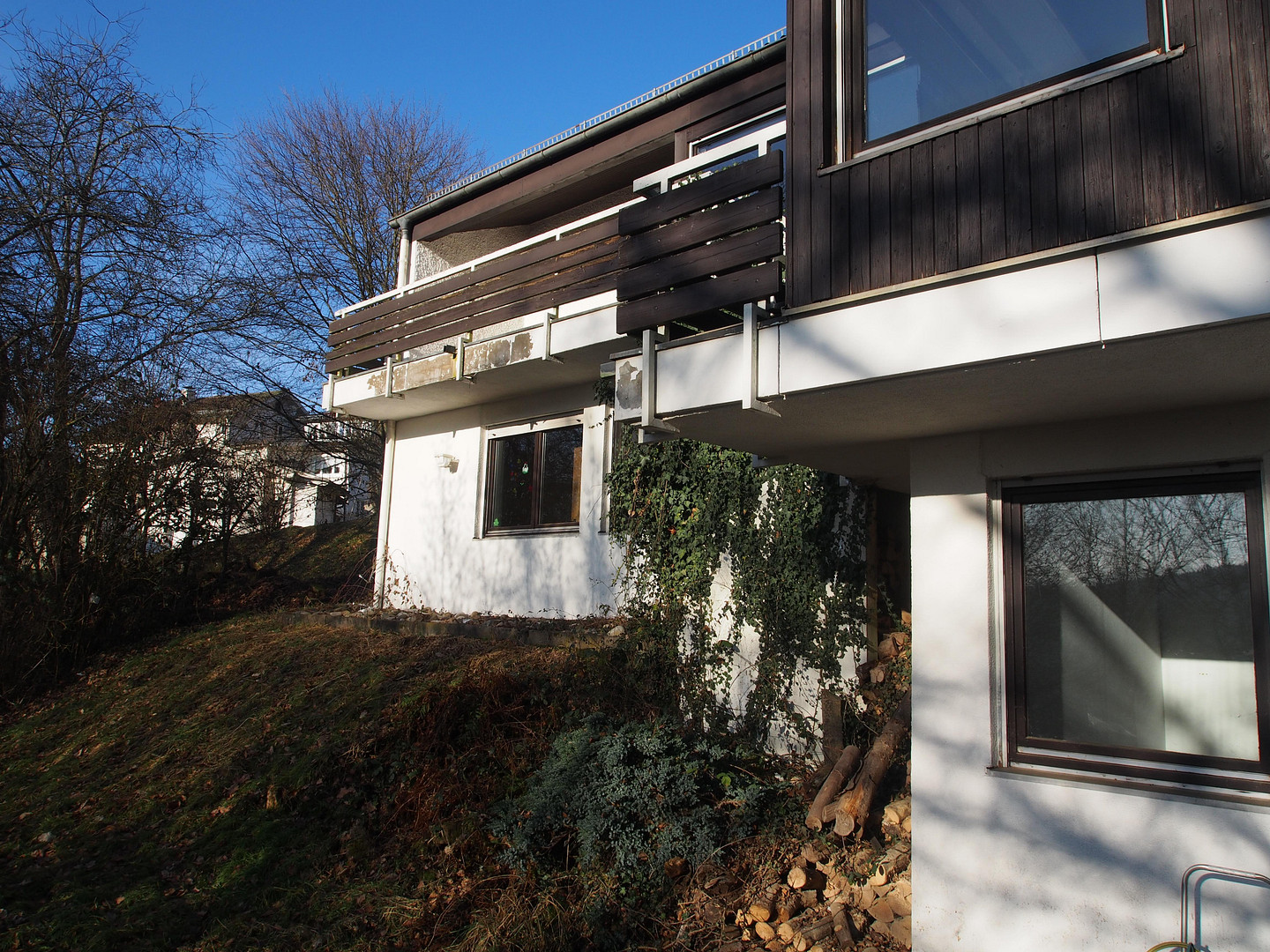 97846 Partenstein – BayernDas Einfamilienhaus wurde im Jahr 1970 erbaut und ist nach Süden ausgerichtet, durch die großen Fensterfronten ist es Lichtdurchflutet. Es verfügt über mehrere teilweise versetzte und offene Stockwerke sowie ein teilweise ausgebautes Pultdach. Die Wohnfläche beträgt insgesamt 120 Quadratmeter. Es ist in den Hang hinein gebaut. Der Spitzboden ist teilweise zum Wohnraum ausgebaut worden. Das Gebäude ist stufenförmig unterkellert und weist kleine Modernisierungen im Rahmen der Instandhaltung auf. An der Straßenseite befindet sich eine Garage mit einer Fläche von 18 Quadratmetern, die ebenfalls aus dem Baujahr 1970 stammt. Die gedämmte Außenfassade ist schlicht gehalten und zeigt keine besonderen architektonischen Merkmale. Die Fenster sind mit Rollläden ausgestattet. Das Gebäude verfügt über 3 Balkone, welche mit einem Geländer aus Holz versehen sind. Die Terrassen sind mit Fliesen ausgelegt und bietet einen Blick auf den Gartenbereich. Im Bereich des Gartens gibt es noch eine große Terrasse welche mit Waschbeton Platten ausgelegt ist.