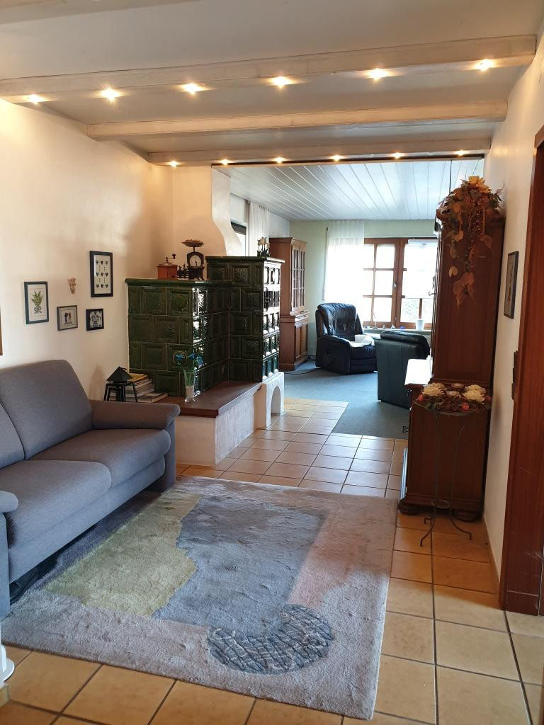 - ein großes Wohnzimmer mit Kachelofen und Wintergarten,