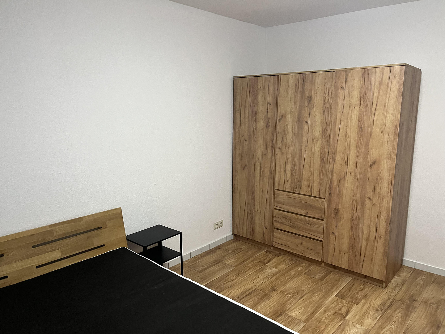 Die Wohnung wird voll möbliert vermietet. Zur Ausstattung gehören ein Sofa, ein Esstisch mit Stühlen, eine Kommode, ein Bett sowie ein geräumiger Kleiderschrank.