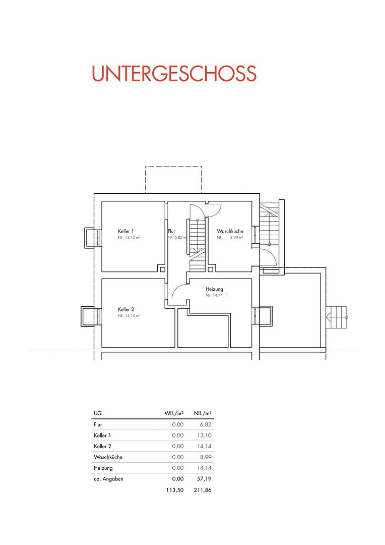 Mit ca. 114 m² Wohnfläche auf zwei Etagen plus ausbaufähigem Dachboden und vollunterkellertem Untergeschoss bietet die Immobilie ausreichend Platz.