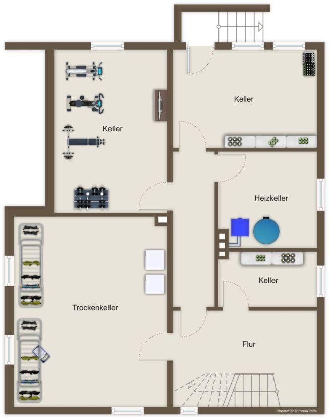 Durch einen weiterer Raum gelangen Sie zur Kellertreppe die in den Garten führt.