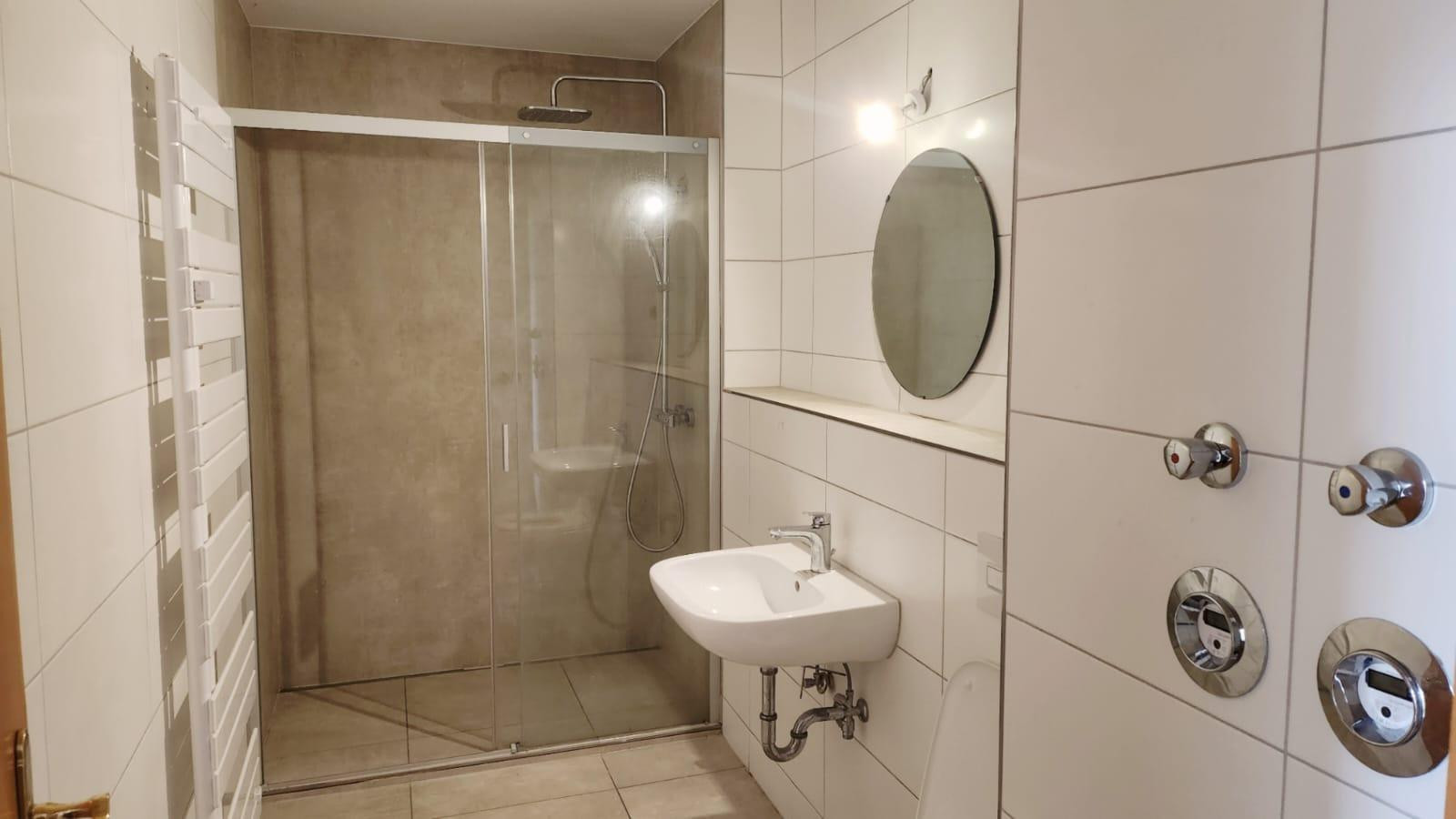 Die beiden Badezimmer sind modern gefliest und verfügt über ein Außenfenster, eine Badewanne, eine Dusche, ein Hänge-WC sowie ein Waschbecken. Der Anschluss für die Waschmaschine ist selbstverständlich vorhanden.
