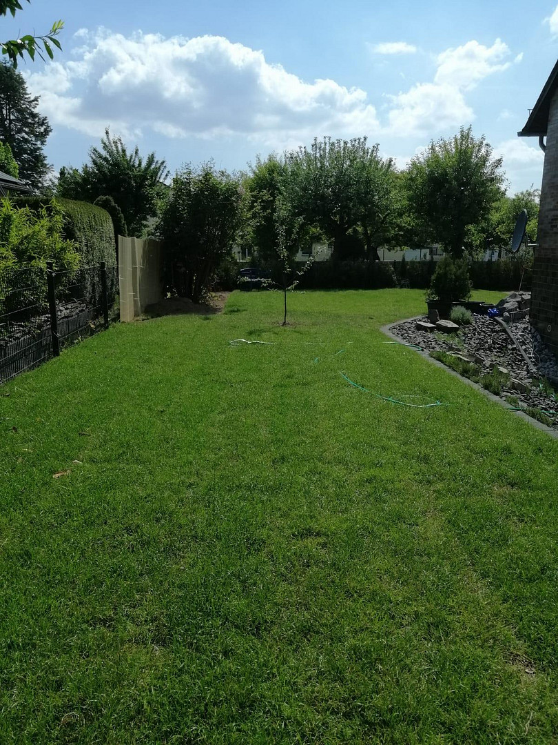 Der Außenbereich umfasst eine Gartenfläche am Haus sowie eine Terrasse, die zusätzlichen Wohnkomfort im Freien bietet. Eine Garage ist vorhanden. Darüber hinaus bestehen zusätzliche Stellplatzmöglichkeiten auf dem Grundstück, die vom Eigentümer angelegt wurden und den