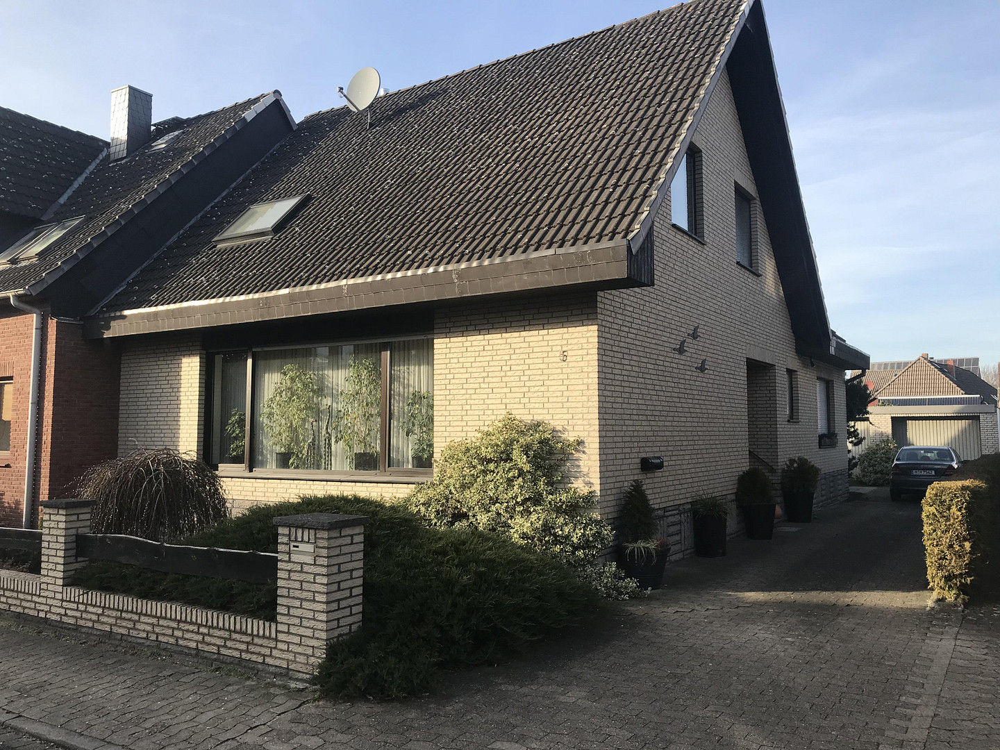 Die Deckenhöhe im Keller ist mit 2,50 m großzügig gestaltet worden. Im Wohnzimmer befindet sich ein, mit Granitstein, gemauerter Kamin. Im Erdgeschoß haben die Fenster Jalousien. Es befindet sich eine massive Dreifachgarage mit Nebenräumen auf dem Grundstück.