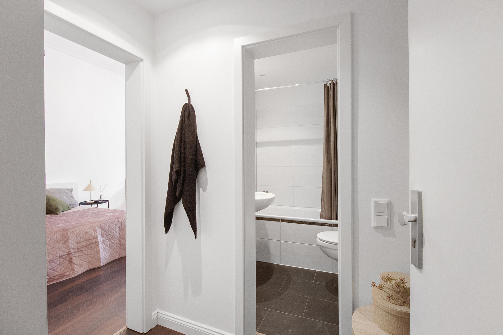 Die Verwendung der Beispielbilder erfolgt aus Rücksicht auf die Privatsphäre der aktuellen Mieterin und dient der realistischen Darstellung des Ausstattungsstandards. Der Grundriss entspricht selbstverständlich der hier angebotenen Wohnung.