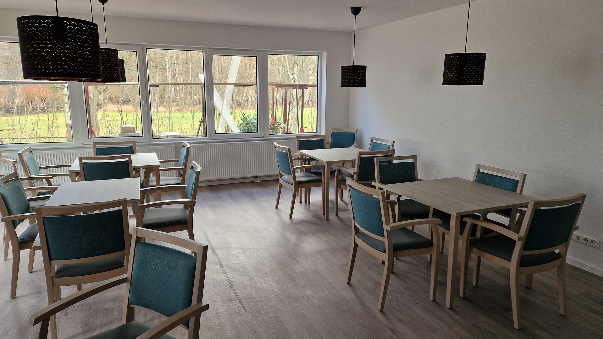 In dem ehemaligen kernsanierten Hotel befinden sich insgesamt 18 Ein- oder Zwei-Zimmer Apartments in einer Größe bis zu 55 m². Jedes Apartment verfügt über eine Küchenzeile mit einem Doppelkochfeld, einem Spülbecken, Abstellmöglichkeiten sowie einem Kühlschrank. Des Weiteren befindet sich im Apartment ein Badezimmer inklusive einer modernen barrierefreien Dusche. Die Möglichkeit zum Entspannen an der frischen Luft bietet wahlweise ein Balkon, eine Terrasse oder eine Dachterrasse, die bequem über den Wohnraum betreten werden kann. Im Untergeschoss befinden sich neben der Waschküche auch noch großzügige Abstellräume, die mit dem Fahrstuhl gut zu erreichen sind. Im Gastraum und der angrenzenden Sonnenterrasse können Besucher empfangen, oder gemeinsame Aktivitäten durchgeführt werden. Direkt vor dem Gebäude befinden sich fünf PKW Stellplätze, die mit Elektroladesäulen versehen werden können. Hier können E-Autos parken und bequem dabei geladen werden.