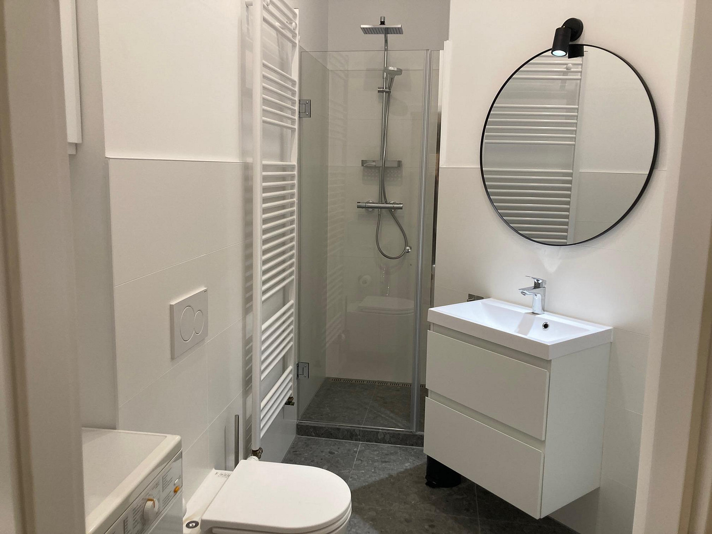 •Modernes Bad mit Waschmaschine & beheiztem Handtuchhalter
