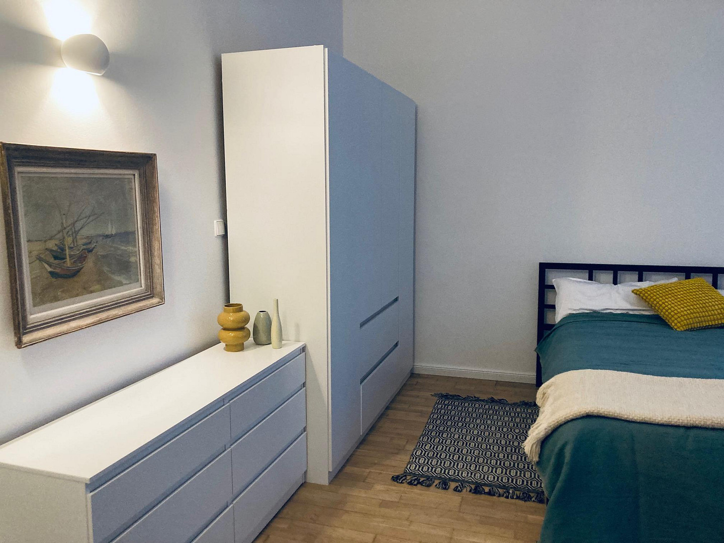 •Schlafzimmer mit Queensize-Bett (200 × 140 cm), grosser Kleiderschrank & Arbeitsplatz