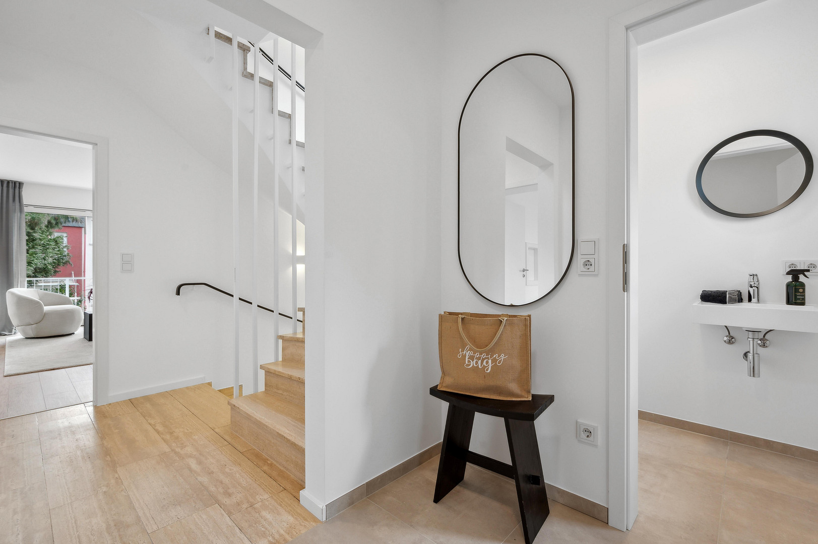 Im Erdgeschoss befinden sich ein Gästezimmer (ideal auch als Homeoffice), ein Wohnzimmer, ein Esszimmer, die Küche sowie ein Gäste-WC.